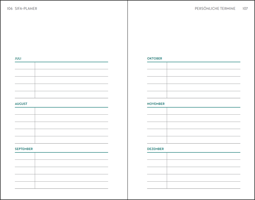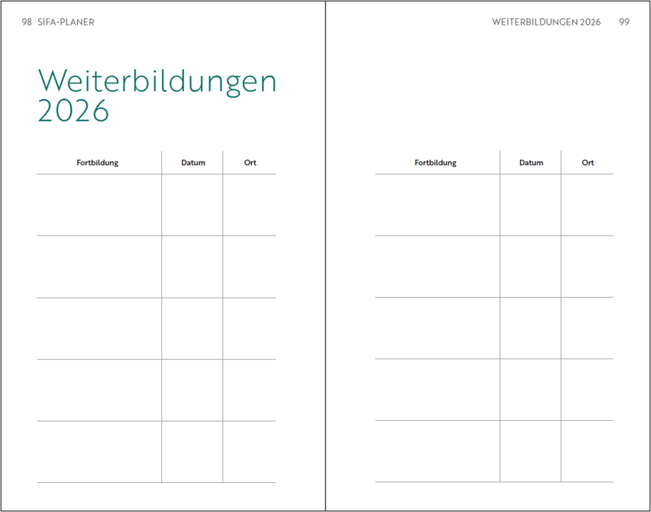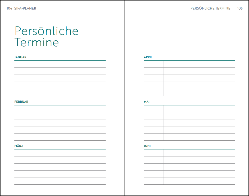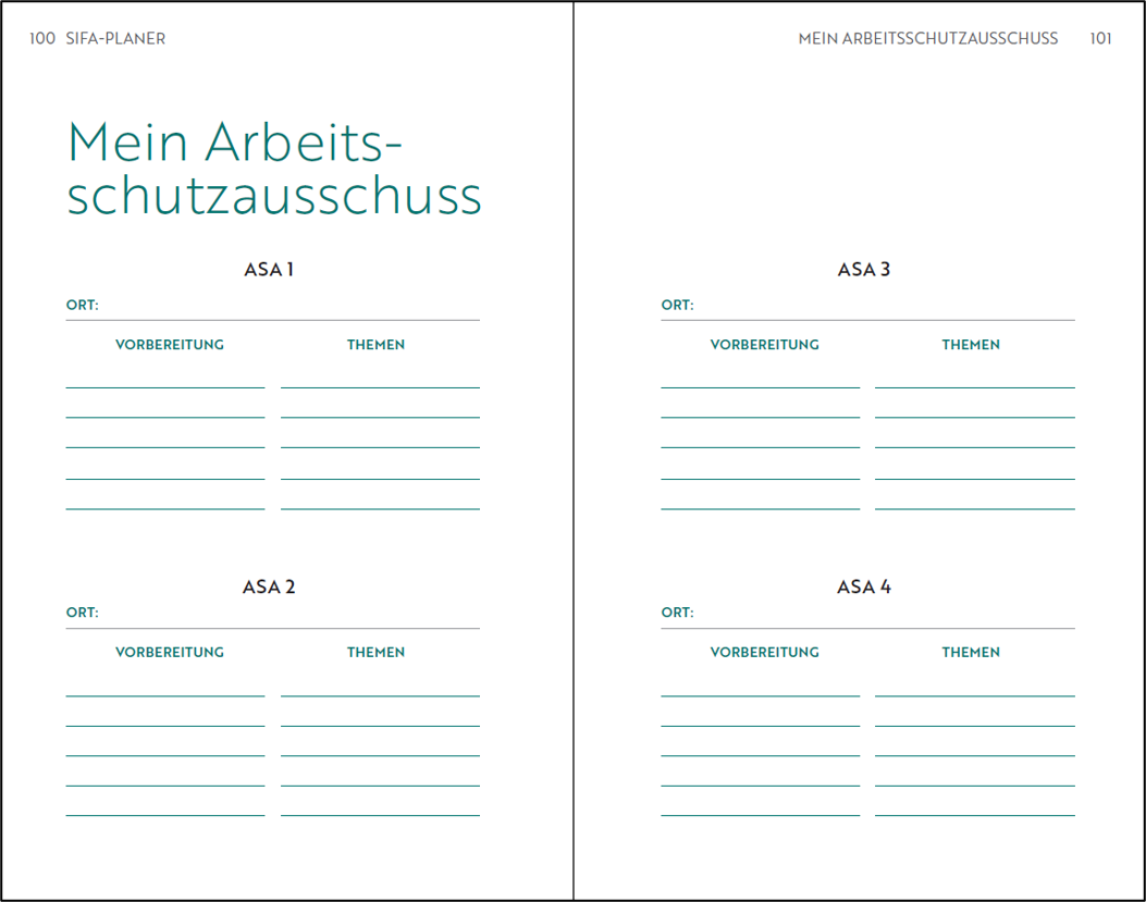 Wichtige Kontakte, betriebliche Beauftragte, Termine für Arbeitsmittelprüfungen oder Weiterbildungen – notieren Sie Ihre Termine im SIFA-PLANER und behalten Sie so alles, was wichtig ist, im Blick!